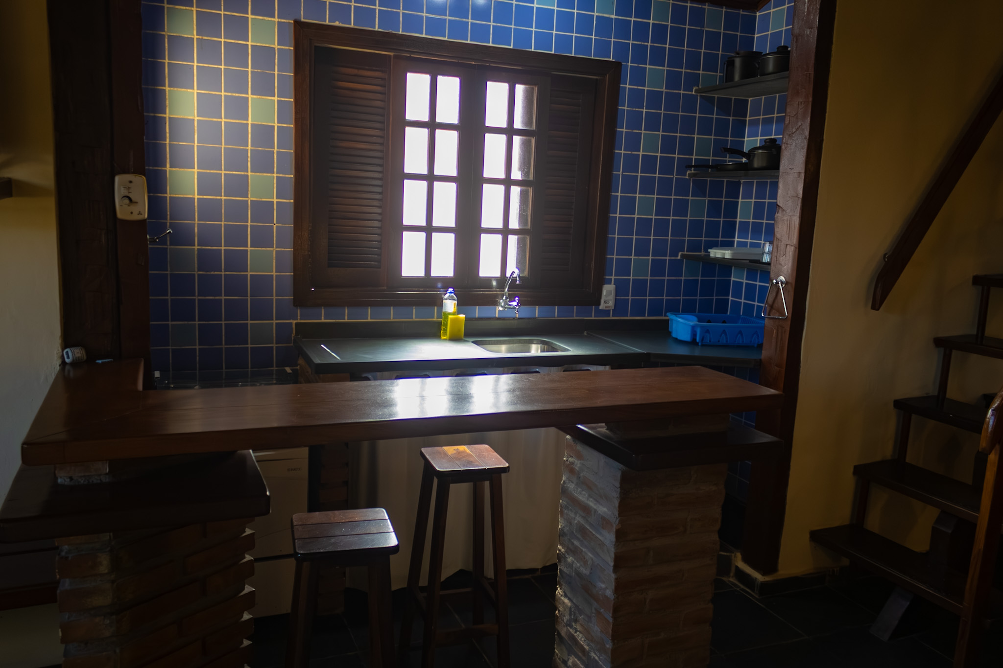 A copa americana dispõe de fogão 4 bocas, pia, balcão e utensílios.